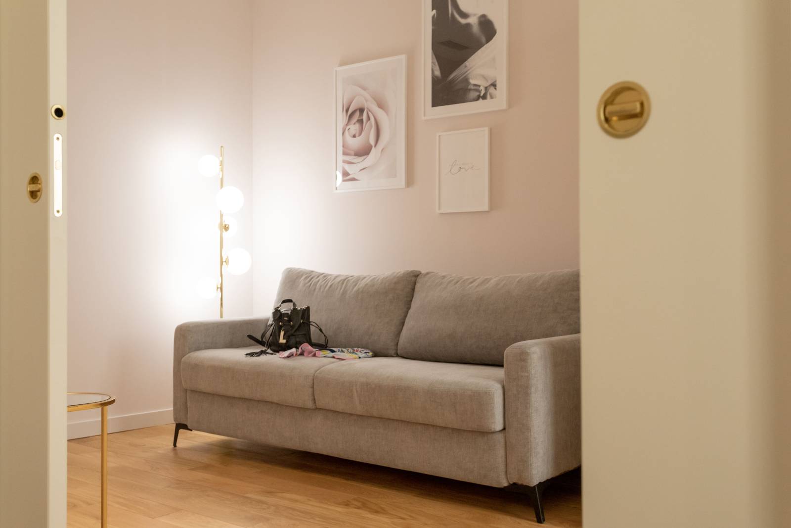 Dans le coin nuit, séparé du salon, trône un lit king-size moelleux, drapé de draps en percale, invitant les amoureux à se détendre dans un confort absolu. Les lumières tamisées créent une ambiance douce et romantique, parfaite pour une soirée en tête-à-tête.